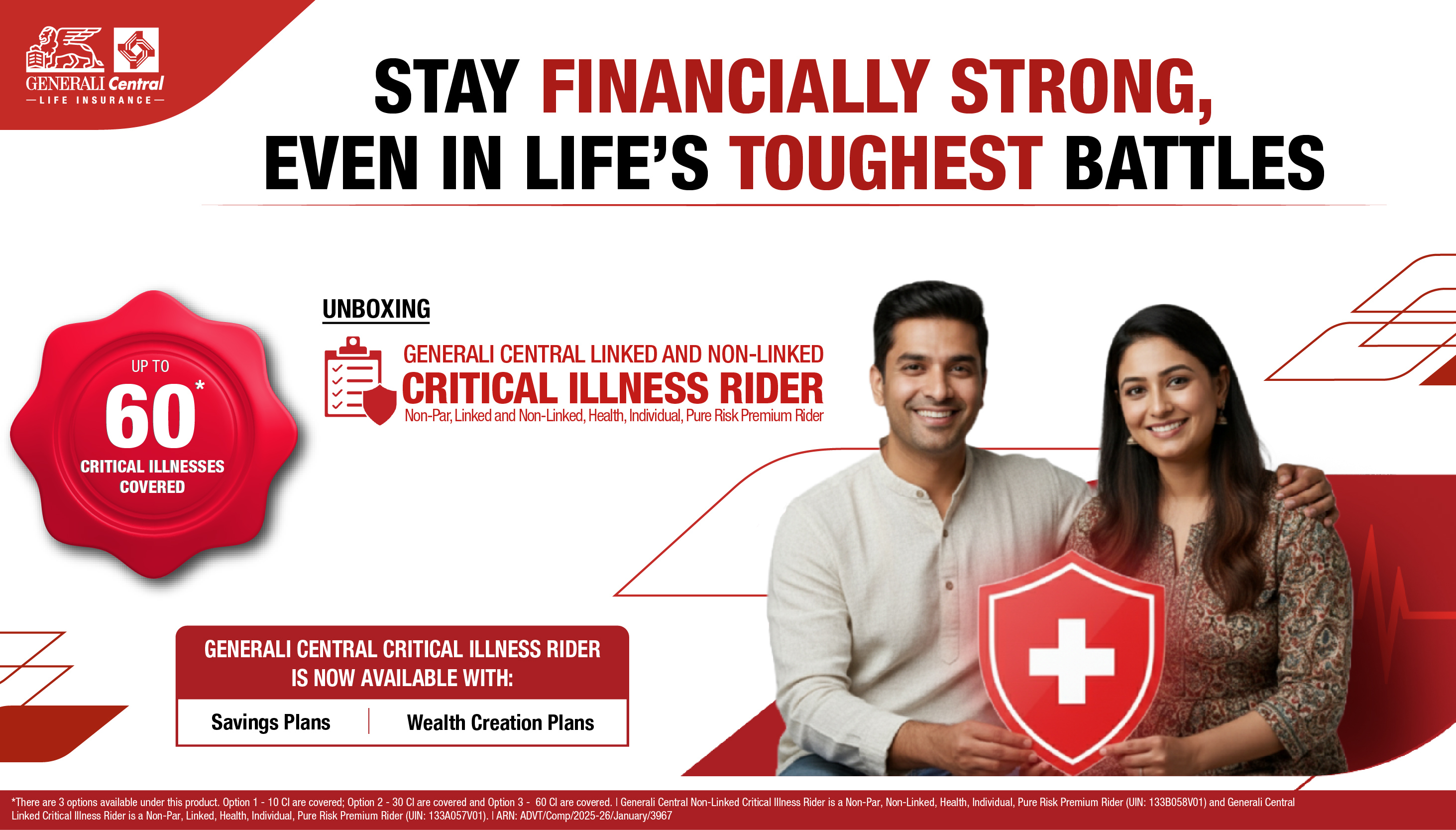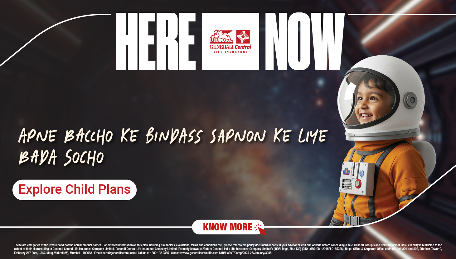 Founded in 1831, Generali is the majority shareholder with a stake of 73.99%. It brings deep insurance expertise along with best practices from its global network, driving sustainable and profitable growth for its stakeholders. Central Bank of India, established in 1911, holds a 25.18% stake in the company. Its extensive distribution network of over 4,500 branches, along with a wide array of financial products and services, is designed to meet diverse customer needs. With a strong presence across India, Generali Central Life Insurance Company Limited provides comprehensive life insurance solutions for both individuals and groups. Reflecting a strengthened commitment to be your Lifetime Partner, the life insurance offerings span across various categories, including Term, Savings, Child, Retirement, Wealth Creation, and Group life insurance plans.