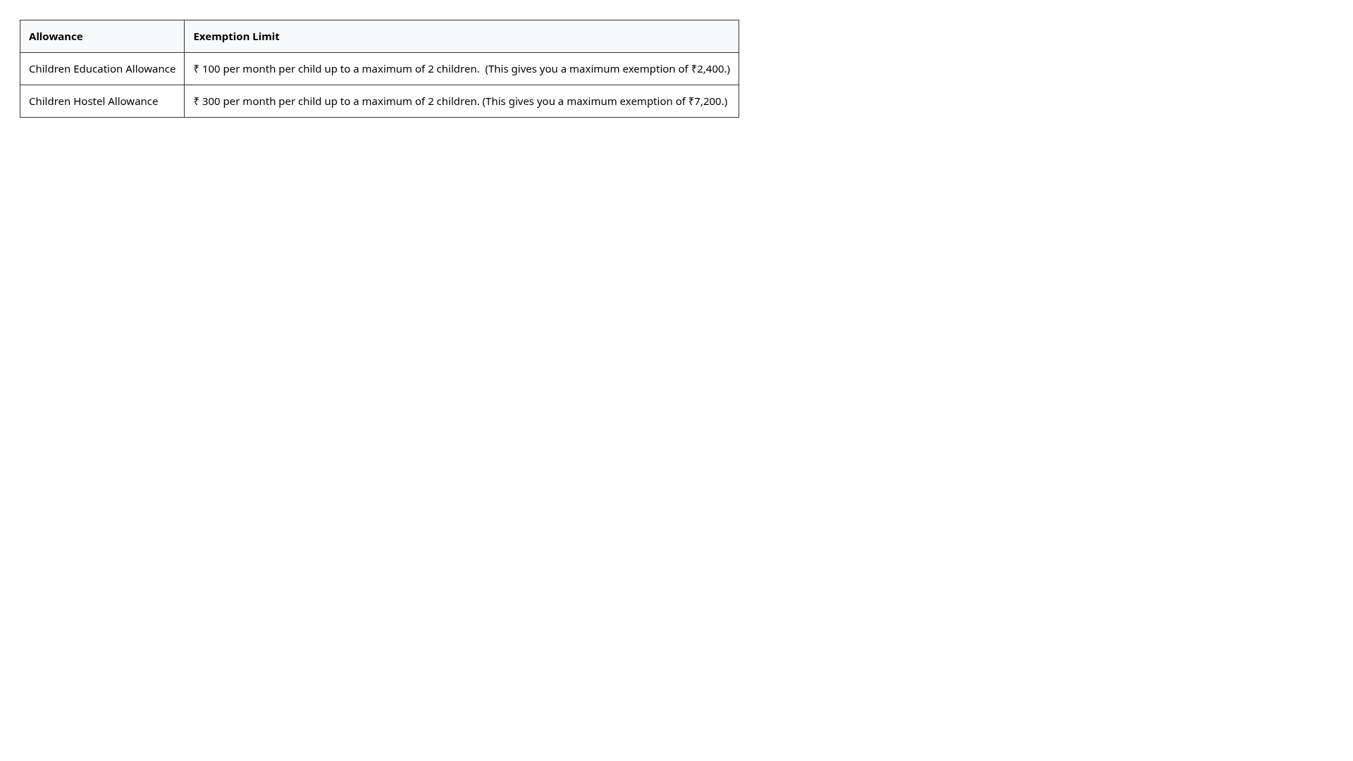 According to Section 10(14) of the 1961 Income Tax Act, special allowances are provided to salaried people in order to help them pay for their children's education costs and housing costs.