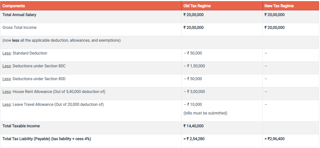 Under the old tax structure, one may save a lot of money by making different tax-saving investments and/or costs, as shown in the example above.