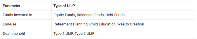 What are the different types of ULIPs?