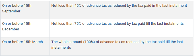 If it is found that the total tax liability that a freelancer owes for the financial year exceeds the sum of ₹10,000, then the taxpayer is required to pay off his/her due amount in 4 quarterly instalments, as follows