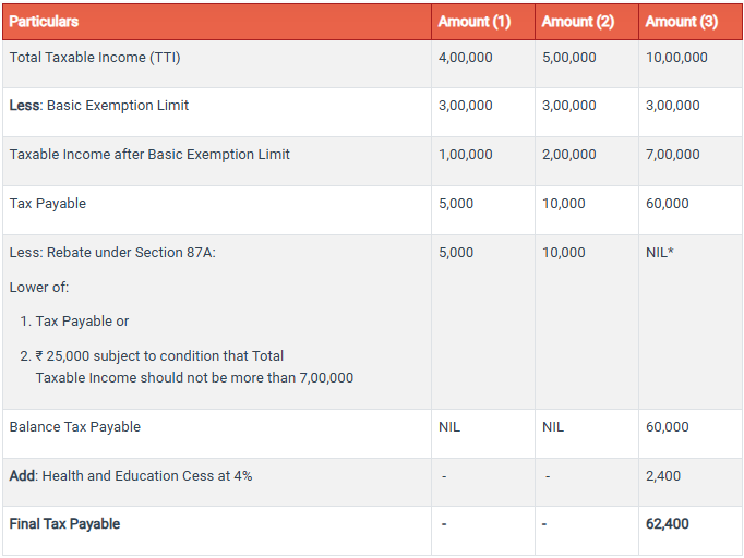 *Rebate amount allowed under Section 87A may be lower of limits specified above or the amount of tax payable.
