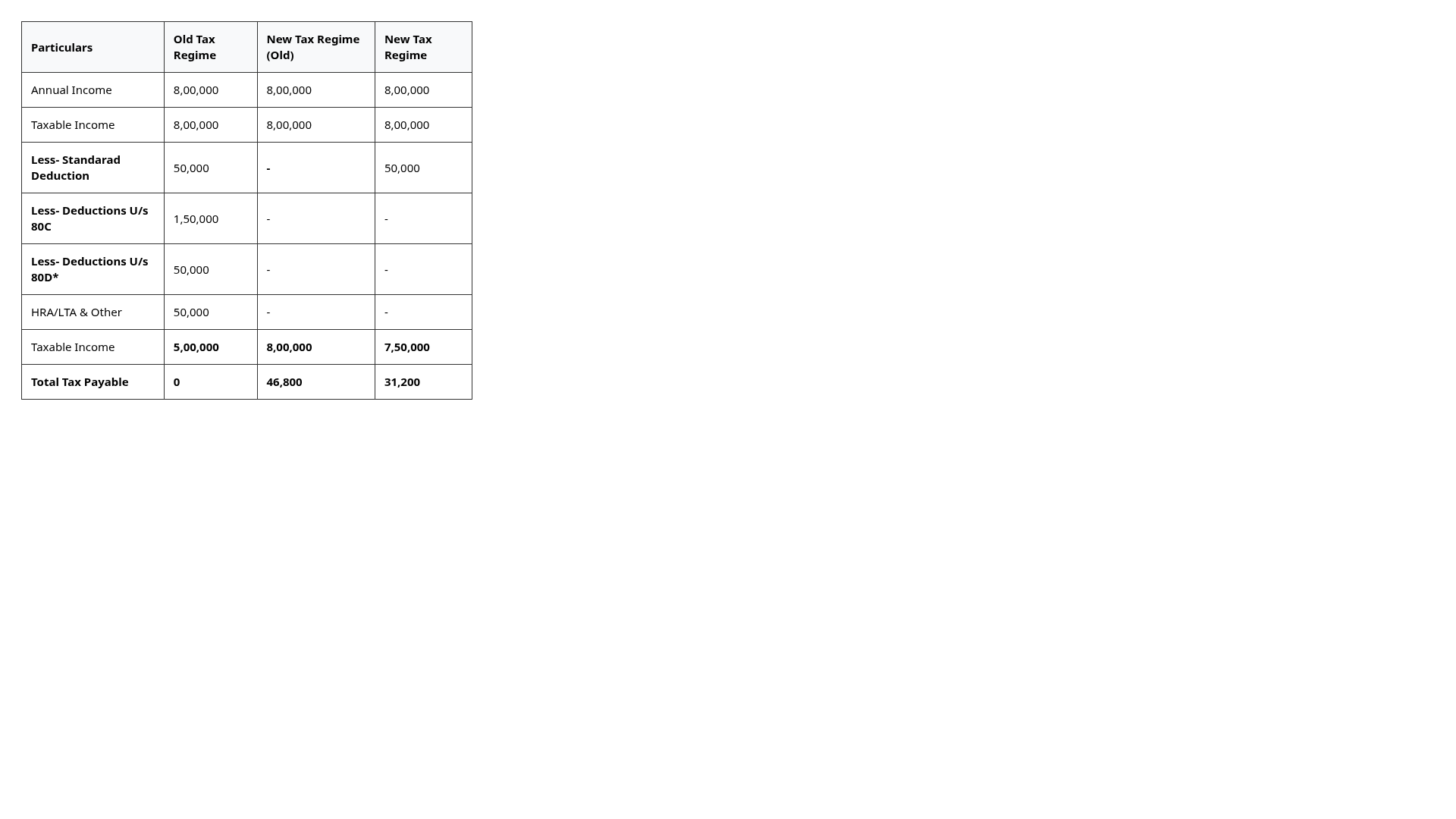 Because everyone's eligibility for deductions, sources, and amount of income are different, one rule cannot be applied to everyone. Therefore, it becomes important for taxpayers to analyze and understand the tax payable under both regimes before deciding which one to choose.