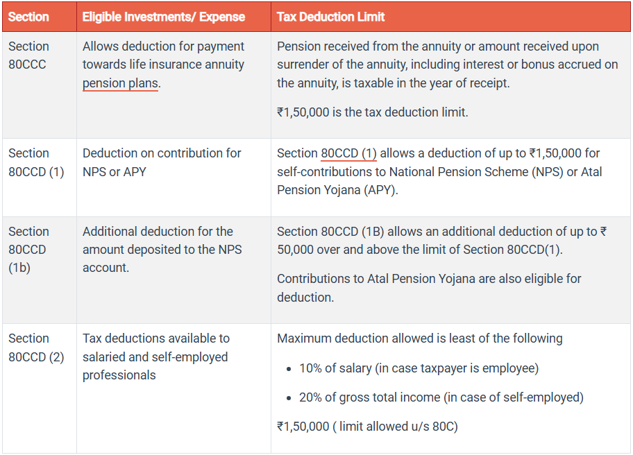 Under section 80C, there are subsections 80CCC, 80CCD (1), 80CCD (1b), and 80CCD (2).
