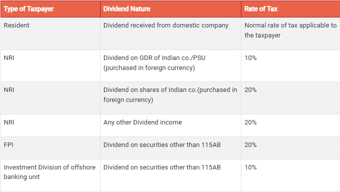 The TDS on dividend income is charged as follows: